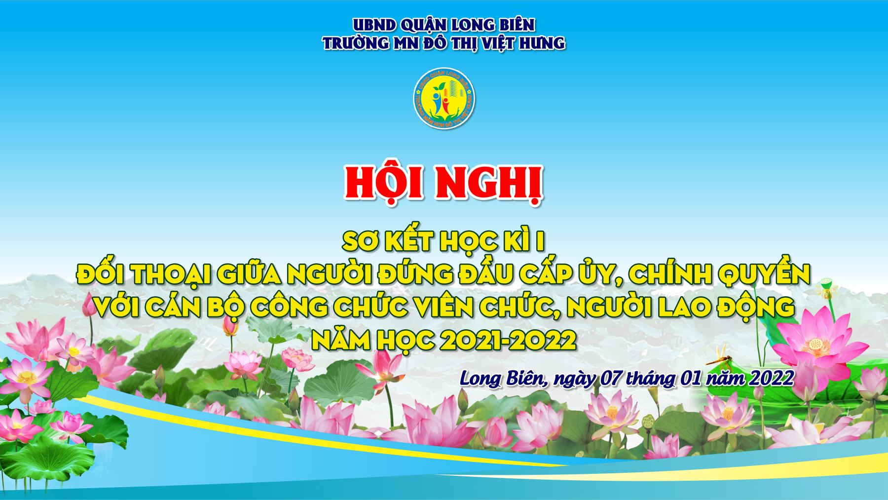 !important; Một nửa chặng đường của năm học 2021 – 2022 của trường mầm non Đô thị Việt Hưng đã trôi qua. Tuy nhiên, năm nay do tình hình dịch bệnh Covid – 19 đang diễn ra hết sức phức tạp nên Hội nghị Sơ kết học kì I năm học 2021- 2022 được nhà trường tổ chức qua hình thức online vào sáng ngày 07/01/2022 có sự tham gia của toàn thể đội ngũ cán bộ, giáo viên, nhân viên trong nhà trường.