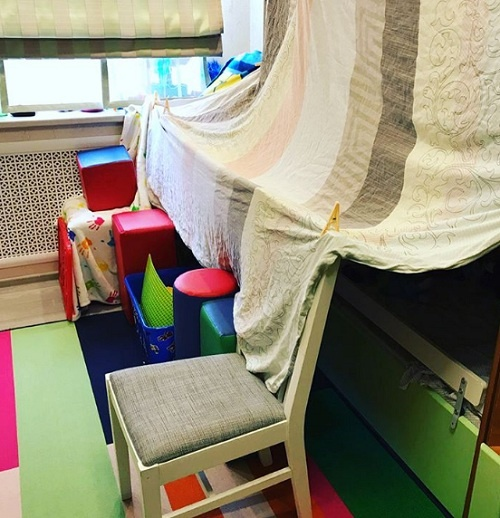Không gian riêng tư và ấm cúng giúp trẻ thỏa sức theo đuổi những suy nghĩ vẩn vơ trong đầu. Chiếc lều không cần cầu kỳ, có thể chỉ là vài mảnh chăn và những chiếc gối thật êm. Thi thoảng, bạn hãy đưa giấy bút và mời trẻ vào lều, bật đèn, yêu cầu sáng tác truyện hoặc vẽ tranh kể lại một ngày vừa trải qua.