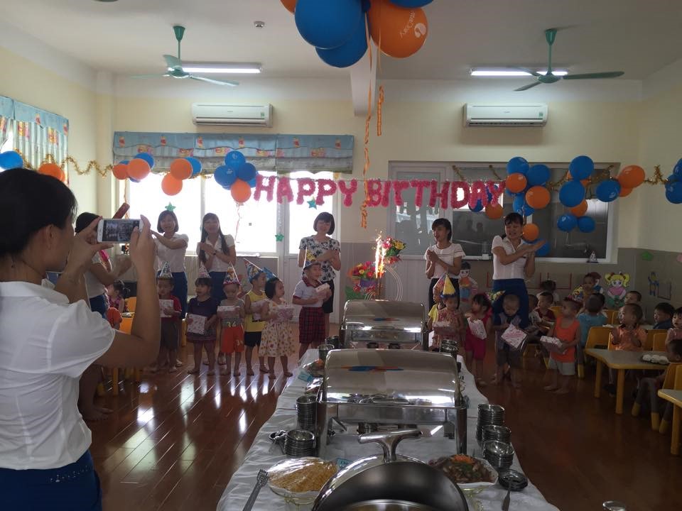 Bữa tiệc diễn ra trong không khí tưng bừng, phấn khởi. Tất cả các con đều hào hứng tham gia các tiết mục văn nghệ, các bài hát tiếng anh giao lưu vui nhộn. Sau phần văn nghệ các bạn sinh nhật trong tháng 8 được thổi nến, cắt bánh. Cô Trần Thị Hoàng Lâm – Hiệu trưởng nhà trường đã thay mặt các cô bác trong trường tặng quà và gửi tới các con những lời chúc yêu thương nhất. Chúc các con mãi là con ngoan trò giỏi, là những bông hoa tươi thắm trong vườn hoa Mầm non Đô Thị Việt Hưng.