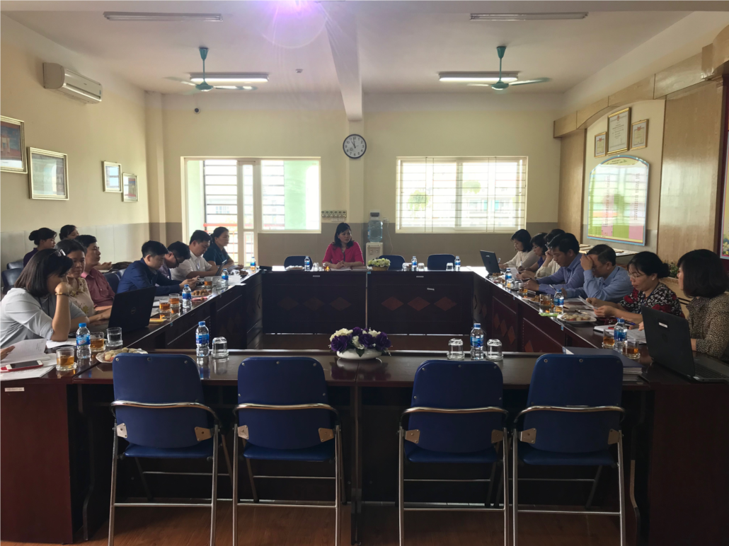Tại buổi làm việc, Đồng chí Đinh Thị Thu Hương đã thông qua quyết định thành lập đoàn kiểm tra và nêu mục đích của buổi kiểm tra để rà soát những nội dung nhà trường đã làm được trong năm học 2017 – 2018 theo tiêu chí mô hình THĐT, đánh giá và giúp đỡ nhà trường tiếp tục thực hiện để được quận công nhận đạt tiêu chuẩn THĐT trong năm học này. Đồng chí cũng phân công cho các đ/c thành viên trong đoàn về nhiệm vụ kiểm tra. Đại diện nhà trường tiếp thu ý kiến về nội dung làm việc, đồng chí Trần Thị Hoàng Lâm cũng đã phân công các đ/c trong ban chỉ đạo mô hình THĐT của nhà trường cung cấp tài liệu, hồ sơ và minh chứng theo yêu cầu của từng bộ phận trong đoàn kiểm tra.