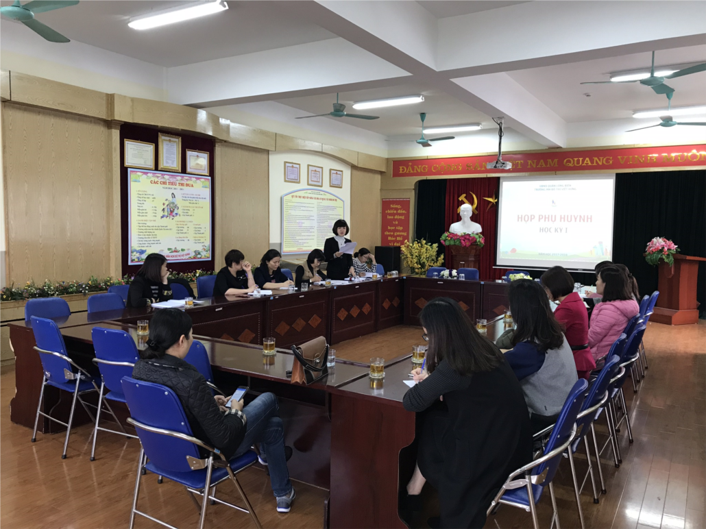 Trong buổi họp với Ban đại diện phụ huynh học sinh các lớp, đồng chí Trần Thị Hoàng Lâm – Bí thư chi bộ - Hiệu trưởng nhà trường đã thông qua báo cáo sơ kết học kỳ I năm học 2017 - 2018 và đưa ra phương hướng hoạt động trong học kỳ II. Đồng chí Hiệu trưởng cũng gửi những lời cảm ơn tới toàn thể phụ huynh đã luôn đồng hành bên cô và trò nhà trường trong suốt học kì I và mong muốn tiếp tục nhận được sự ủng hộ, đồng hành của các bậc phụ huynh trong các hoạt động của học kỳ II. Đại diện phụ huynh học sinh các lớp cũng đã đưa ra những ý kiến đóng góp trên tinh thần xây dựng, những lời động viên khích lệ ghi nhận những thành tích của nhà trường về các phong trào thi đua, chất lượng chăm sóc giáo dục trẻ và sự phát triển, tiến bộ của học sinh.