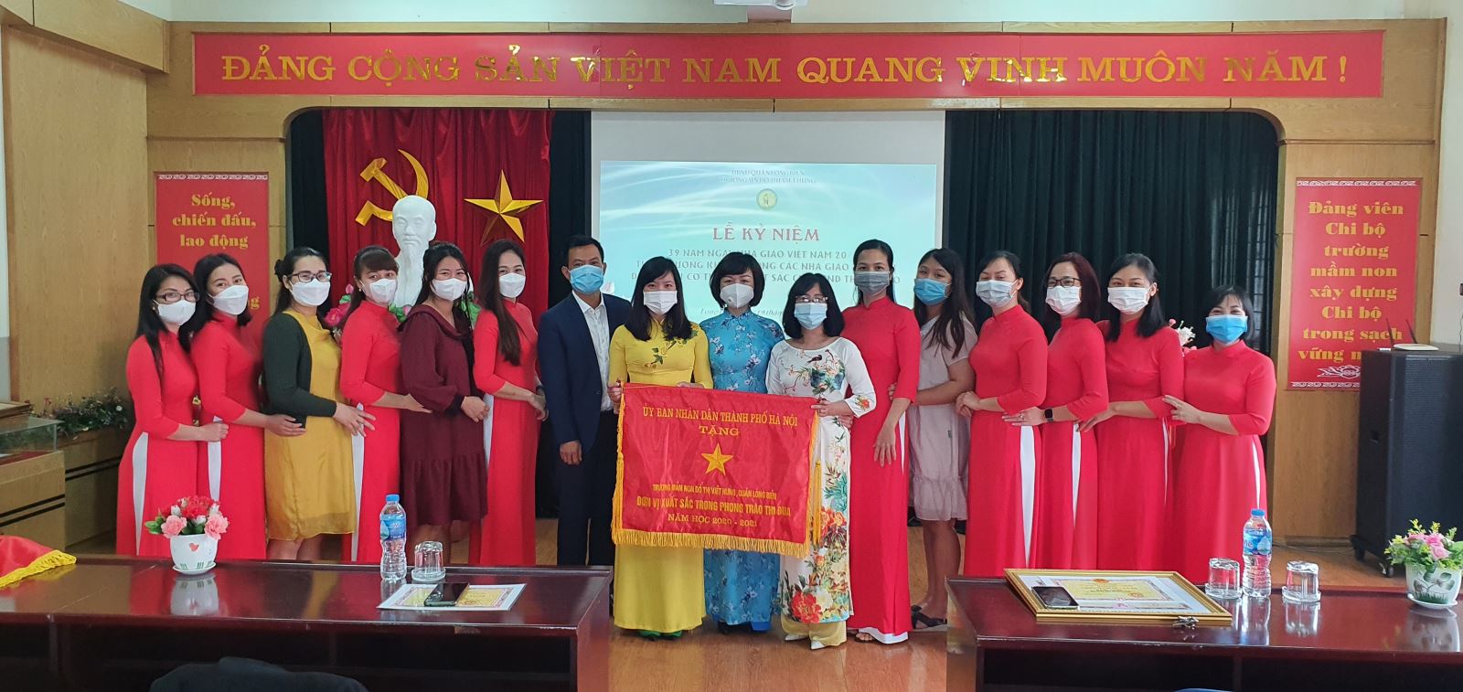 !important; Từ những nỗ lực trong suốt năm học vừa qua, trường mầm non Đô thị Việt Hưng vinh dự đón nhận cờ thi đua khen thưởng của Chủ tịch UBND Thành phố Hà Nội về “đơn vị xuất sắc trong phong trào thi đua”. Đây là kết quả đáng tự hào mà cả tập thể nhà trường đã đoàn kết, đồng lòng cùng nhau hoàn thành xuất sắc các nhiệm vụ năm học. Bên cạnh đó, Đồng chí Trần Thị Hoàng Lâm, Bí thư chi bộ, Hiệu trưởng nhà trường còn vinh dự đón nhận các giải thưởng cá nhân xuất sắc:
