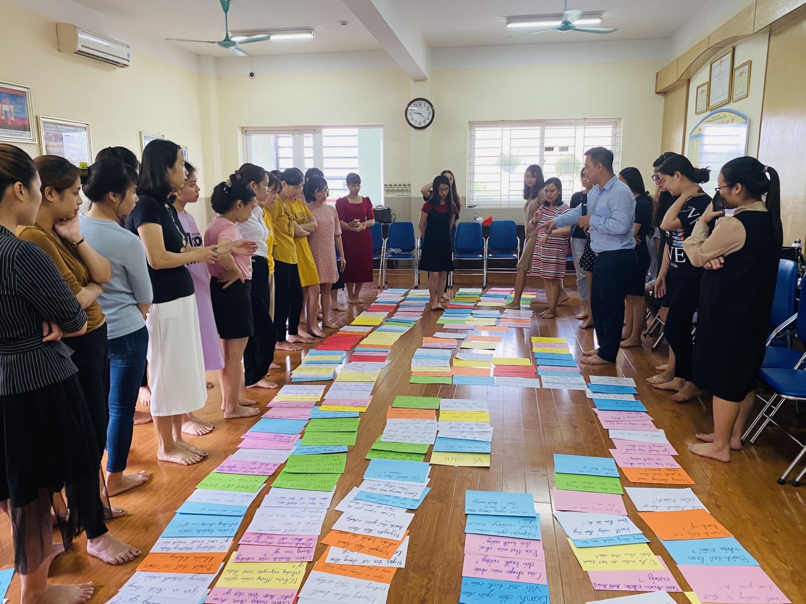 Trong suốt buổi tập huấn, dưới sự hướng dẫn của giảng viê !important;n, các cô giáo đã tích cực hoạt động sôi nổi, nhiều ý tưởng mới được đưa ra, nhiều câu hỏi được giải đáp. Ai cũng rất hào hứng khi được khai thác kiến thức và kĩ năng thông qua các phương pháp học tập hiện đại nhất, trong đó tất cả cùng tư duy, tất cả cùng hoạt động, tất cả cùng sáng tạo. Có rất nhiều những điều mới mẻ, hữu ích và thú vị đã đến qua 1 ngày tập huấn về dạy học dự án cùng giảng viên Nguyễn Văn Thanh. Hy vọng các cô sẽ tận dụng thật tốt cơ hội học tập, bồi dưỡng nâng cao năng lực, biến lý thuyết thành thực hành. Các cô sẽ đưa phương pháp dạy học dự án vào thực tế để các bé học sinh được thu hưởng những thành quả tri thức tốt đẹp nhất do các cô giáo mang lại