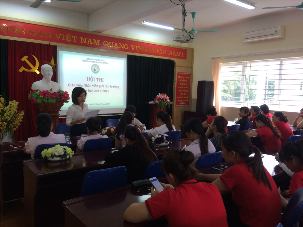 Thực hiện kế hoạch nhiệm vụ năm học 2017 – 2018 của trường mầm non Đô Thị Việt Hưng. Nhằm nâng cao chất lượng CSND- GD trẻ của đội ngũ giáo viên, nhân viên, tiếp tục phát huy truyền thống dạy tốt, học tốt của nhà trường. Chiều ngày 16/10/2017, trường mầm non Đô thị Việt Hưng tổ chức khai mạc hội thi giáo viên nhân viên nuôi dưỡng giỏi cấp trường năm học 2017 – 2018.