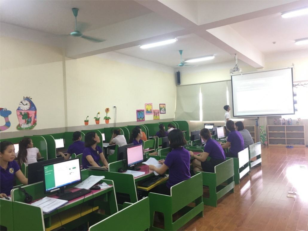 Để đáp ứng yêu cầu mô hình trường học điện tử, mỗi giáo viên của trường còn phải thành thạo các kỹ năng về ứng dụng các phần mềm. Hiểu được tầm quan trọng đó, trường MN Đô Thị Việt Hưng thường xuyên tổ chức tập huấn bồi dưỡng cho CBGVNV các kiến thức về CNTT: Ứng dụng các phần mềm trong giảng dạy và quản lý, thiết kế các bài giảng điện tử, các trò chơi trí tuệ, sử dụng các trang thiết bị CNTT như: bảng tương tác, máy chiếu đa vật thể; khai thác Internet..... Trong 4 ngày này các giáo viên trường Mầm non Đô thị Việt Hưng đã rất tích cực và nghiêm túc tham gia buổi tập huấn kĩ năng sử dụng Word và Excel.