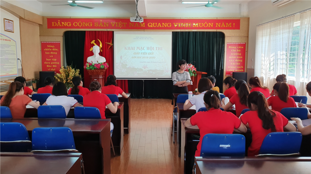 Thực hiện kế hoạch nhiệm vụ năm học 2019 – 2020 của trường mầm non Đô Thị Việt Hưng, nhằm nâng cao chất lượng CSND- GD trẻ của đội ngũ giáo viên, tiếp tục phát huy truyền thống dạy tốt, học tốt của nhà trường, chiều ngày 30/09/2019, trường mầm non Đô thị Việt Hưng tổ chức khai mạc hội thi giáo viên giỏi cấp trường năm học 2019 – 2020, đổng thời tiến hành nội dung thi lý thuyết.