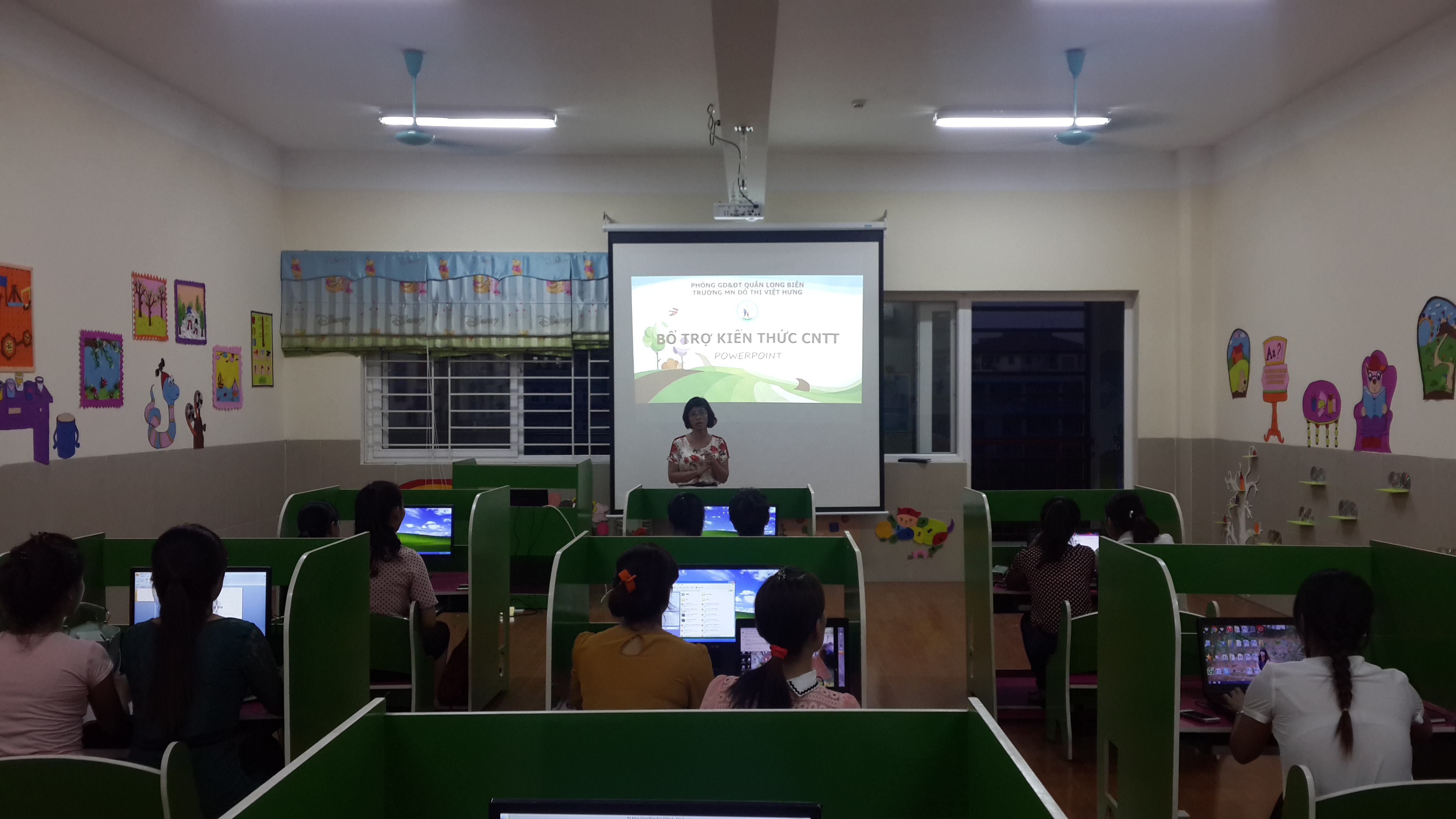 Tham gia lớp tập huấn là tập thể cán bộ, giáo viên, nhân viên trường mầm non Đô thị Việt Hưng. Lớp học bắt đầu từ ngày 06/10/2015 và kết thúc vào ngày 10/11/2015. Dự kiến thời gian tập huấn cho các giáo viên diễn ra vào các buổi chiều thứ 6 hằng tuần. Các buổi tập huấn do cán bộ công nghệ thông tin của trường là Đ/c Trần Đức Tuấn trực tiếp hướng dẫn và giảng dạy . Trong thời gian tập huấn, các học viên được trang bị các kiến thức về việc sử dụng phần mềm Word, Power point, E-leanring, các phần mềm chỉnh sửa, cắt ghép các đoạn video, nhạc; các kĩ năng soạn thảo văn bản…
