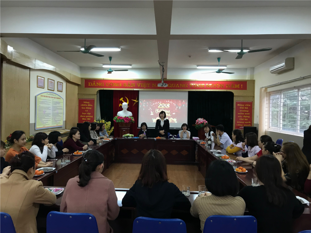 Tại buổi gặp mặt, cô giáo Trần Thị Hoàng Lâm- Bí thư chi bộ, Hiệu trưởng Nhà trường gửi lời chúc mừng năm mới đến toàn thể cán bộ, giảng viên, nhân viên trong toàn Trường. Cô hy vọng trong năm Mậu Tuất 2018 toàn thể cán bộ, giáo viên, nhân viên Nhà trường sẽ đoàn kết một lòng, cùng nhau phấn đấu đạt được nhiều thành tích hơn nữa trong sự nghiệp giáo dục và đào tạo, tiếp tục xây dựng trường mầm non Đô thị Việt Hưng thành một địa chỉ giáo dục có uy tín, chất lượng.
