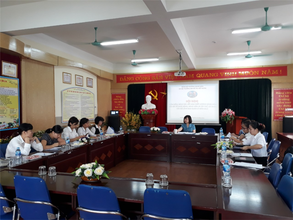 Trong nhiều năm qua chi bộ trường MN Đô Thị Việt Hưng luôn ý thức rõ về vai trong của tổ chức Đảng đối với mọi hoạt động của nhà trường. Xây dựng đội ngũ Đảng viên nói chung và chăm lo công tác kết nạp Đảng viên mới nói riêng là một trong những nhiệm vụ quan trọng của chi bộ. Từ nhận thức trên những năm qua chi bộ nhà trường đã tập trung chỉ đạo có hiệu quả công tác tạo nguồn phát triển đảng viên mới. Trường có đội ngũ giáo viên trẻ và độ tuổi trung bình dưới 35 tuổi chiếm tỷ lệ khá cao, đây là điểm mạnh của trường. Chi bộ nhà trường, nhất là đồng chí Trần Thị Hoàng Lâm - Bí thư chi bộ đặt đúng vị trí công tác phát triển đảng viên, lấy đó làm động lực thúc đẩy giáo viên phấn đấu, tu dưỡng, rèn luyện, bồi dưỡng nhận thức về Đảng, hiểu lý tưởng của Đảng, nắm vững lý luận của chủ nghĩa Mác -Lê - nin và tư tưởng Hồ Chí Minh. Chi bộ đã tập trung chỉ đạo và củng cố chi đoàn thanh niên, đẩy mạnh hoạt động công tổ chức công đoàn cơ sở nhà trường, phát động các phong trào thi đua dạy tốt - học tốt, học tập và làm theo tấm gương đạo đức Hồ Chí Minh. Nhiều biện pháp được chi bộ phối hợp với nhà trường triển khai thực hiện như: Đăng ký tu dưỡng học tập và làm theo tấm gương đạo đức Hồ Chí Minh, tọa đàm với chủ đề “ Học tập và làm theo tấm gương đạo đức Hồ Chí Minh” Chi bộ nhà trường đề ra nghị quyết gắn với các yêu cầu sau: