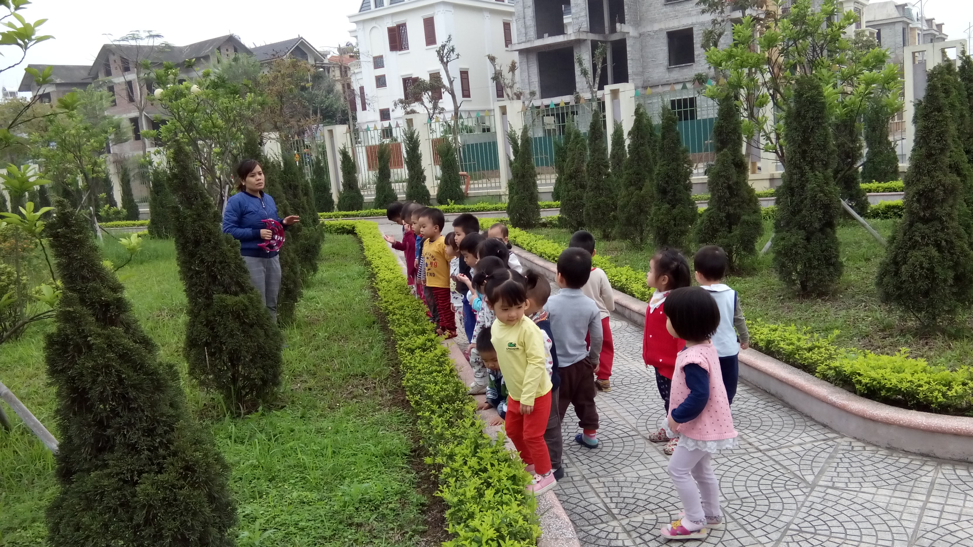 Cô cùng các con trò chuyện về các loại cây trong vườn trường