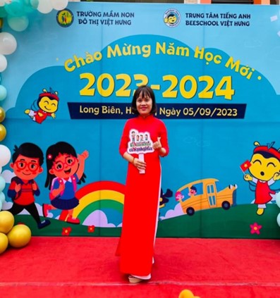 Cô !important; giáo Nguyễn Thị Giang sinh năm 1986, tổ phó khối nhà trẻ, giáo viên Trường Mầm Non Đô thị Việt Hưng cô đã có hơn 12 năm công tác trong nghề. Trong những năm làm nghề giáo viên, cô được trải qua nhiều lớp học, trải nghiệm với các bé ở các độ tuổi khác nhau. Cô cho biết, các bé ở lứa tuổi này mới đi học thường hay khóc và cần sự chăm sóc, dạy dỗ rất khéo léo làm sao trẻ thích đi học và theo được nề nếp của lớp, của trường. Cô chia sẻ “Làm mẫu giáo tức là thay cha mẹ dạy trẻ, muốn làm được như thế thì trước hết phải yêu quý trẻ. Phải có lòng kiên trì và bền bỉ, chịu khó mới nuôi dạy được các con”. Và tôi tin đây không chỉ là phương châm phấn đấu của riêng tôi, mà là của tất cả những giáo viên mầm non, những người đã chọn nghề, gắn bó với con trẻ và luôn say mê, nhiệt huyết với nghề.