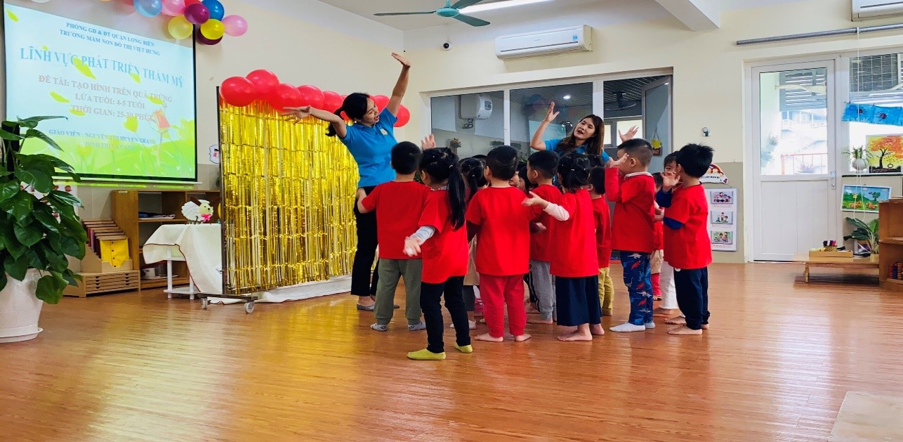 (Ảnh: Cô !important; giáo Huyền Trang dạy dỗ học sinh qua các hoạt động)