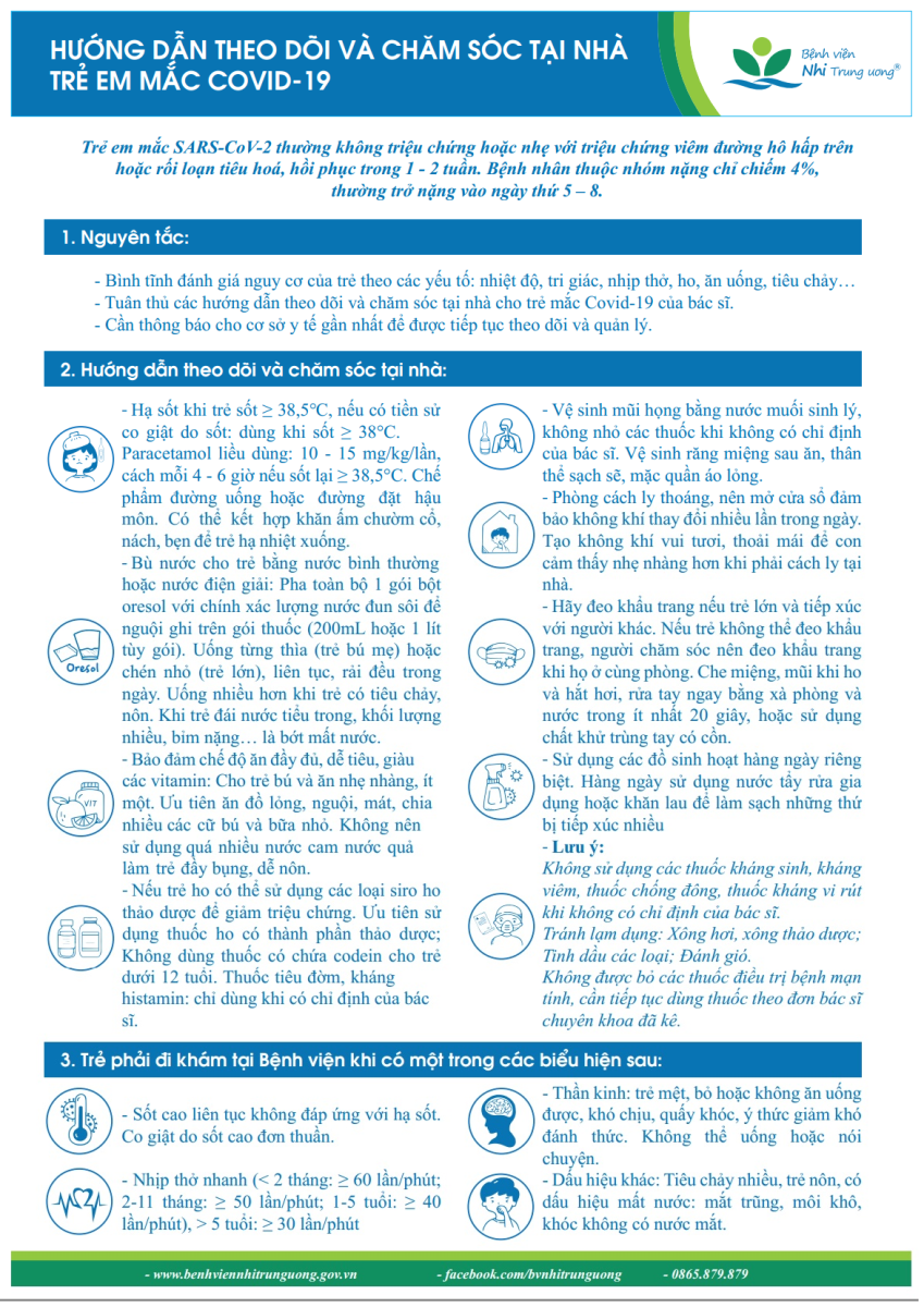 Hướng dẫn theo dõi và chăm sóc trẻ mắc COVID-19 tại nhà